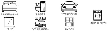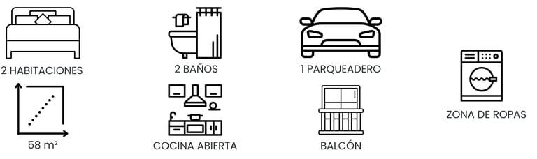 El apartamento cuenta con una distribución funcional que aprovecha muy bien cada espacio. Dispone de cocina abierta con mesón en piedra sinterizada, zona de ropas independiente y una sala comedor amplia y luminosa con balcón, ideal para disfrutar del clima fresco de Cajicá. Tiene una habitación auxiliar con closet y baño completo, y una habitación principal con baño privado y walking closet, diseñada para brindar mayor comodidad y privacidad.