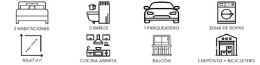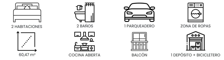 El edificio, de 6 pisos con ascensor, fue diseñado para ofrecer un estilo de vida urbano cómodo y funcional. Dispone de terraza comunal con zona BBQ, salón social, parqueaderos, depósitos y bicicleteros, y se entrega domotizado, lo que contribuye a una operación más eficiente y a menores costos de administración. Además, no cuenta con licencia para rentas cortas, asegurando un entorno residencial más estable y tranquilo.