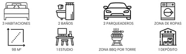 Apartamentos de 98 m², diseñados para ofrecer amplitud, confort y una excelente iluminación natural.