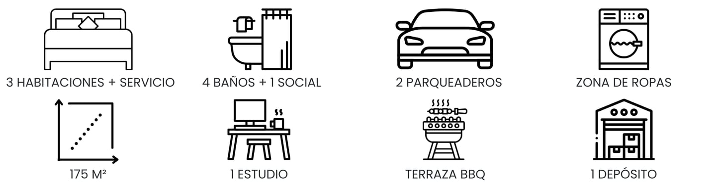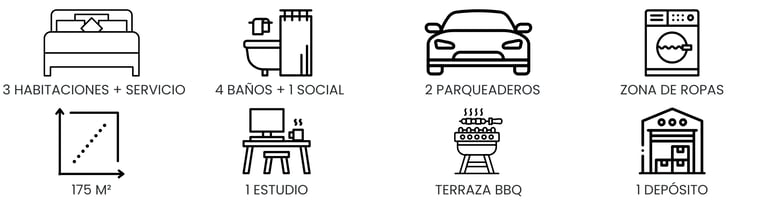 Con 174,81 m² construidos sobre un lote de 362,60 m², esta propiedad en estrato 4 se distingue por sus espacios amplios, luminosos y funcionales. En el primer nivel cuenta con una sala con chimenea a gas, comedor independiente, estudio con mobiliario para dos puestos de trabajo, baño social y cocina tipo americano equipada con lavavajillas y horno empotrados. También dispone de área de ropas, depósito, habitación de servicio con baño privado y una acogedora zona verde con pérgola, espacio para BBQ y área independiente para horno pizzero.