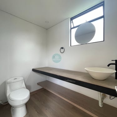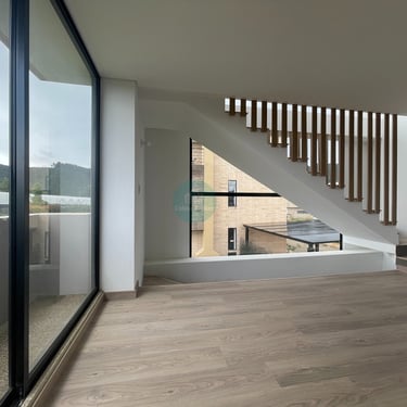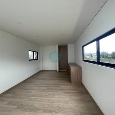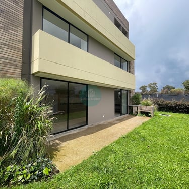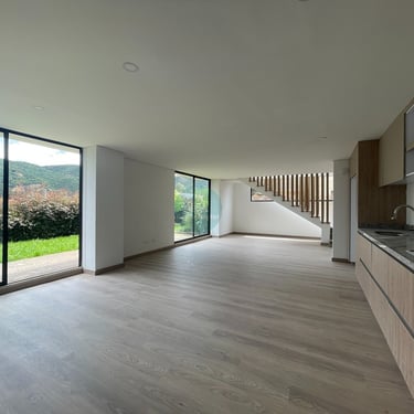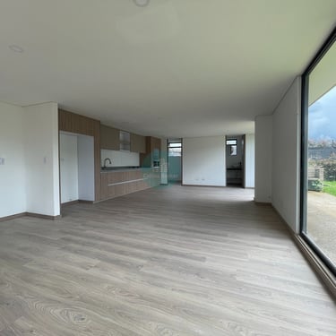 La casa es completamente independiente, la zona verde privada rodea la casa, es para estrenar, cuenta con pisos en madera laminada, primer nivel consta de sala comedor con ventanales a la zona verde, cocina abierta, zona de ropas independiente y baño social, la zona verde cuenta con mesón para BBQ y en la parte frontal tiene espacio para 2 vehículos, puedes instalar pérgola en el caso que lo desees, igualmente en la zona verde interior también puedes instalar pérgola.