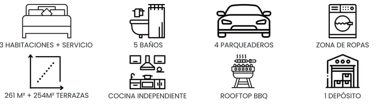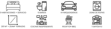 El mayor diferencial es su rooftop de uso exclusivo, un espacio de más de 190 m², con capacidad para más de 120 personas y equipado con zonas BBQ, pérgolas, jardinería ornamental, cerramientos en vidrio templado, iluminación y áreas sociales diseñadas para eventos memorables.