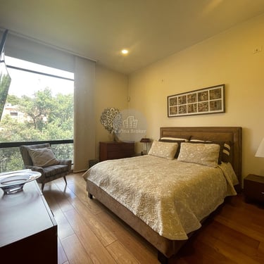 Cuenta con tres habitaciones, todas con baño privado. La habitación principal con espacio para sala auxiliar o estudio ofrece una terraza privada, amplio walking closet y baño con tina.